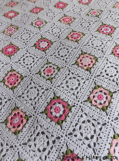 De dame in kwestie had de 2 witte kussens die ik voor mijn moeder heb gemaakt gezien (zie HIER) en vond deze zó mooi dat ze er zelf ook graag wilde hebben. Maar omdat ze zelf niet kan haken vroeg ze dit nu aan mij.